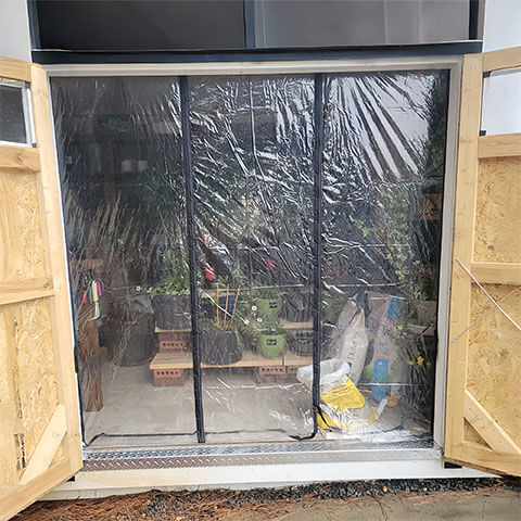 Bought for my camper to keep cool air in during the summer works perfect. Easy to put up. Has been hanging up for a month with no issues with the adhesive. The magnets go right back together once you walk out and are very strong.