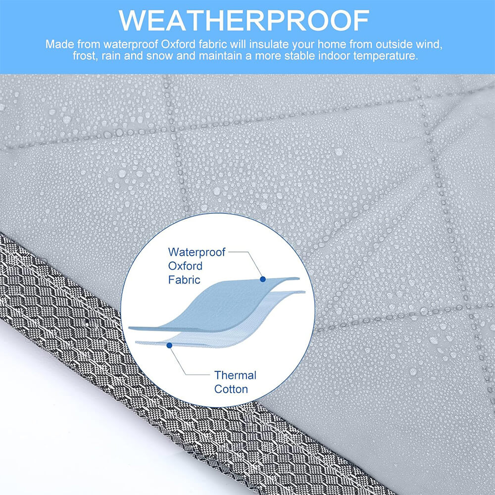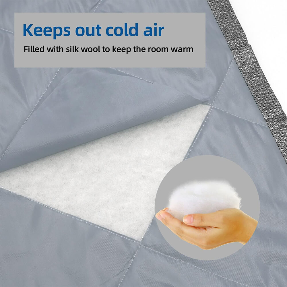 Coldproof and heat insulation 2 in 1. Built-in white cotton can heat and sound insulation. In summer, it can keep the room cool and prevent high temperatures from entering; in winter, it can keep the room warm and prevent cold wind from entering.